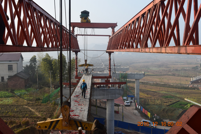 2016年12月15日上午11時(shí)整,隨著施工現(xiàn)場指揮人員準(zhǔn)確到位的指揮和橋梁架設(shè)人員有條不紊地操作,益婁高速公路第11標(biāo)段中陽大橋首片T梁穩(wěn)穩(wěn)落在左幅第1跨墩臺(tái)上,至此,宣告中陽大橋第一片梁架設(shè)成功,為整體施工向節(jié)點(diǎn)工期又邁進(jìn)了堅(jiān)實(shí)的一步。